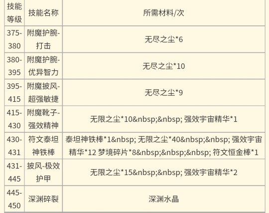 附魔专业的附魔师们汇总了除在附魔训练师处以外可学到的附魔技能