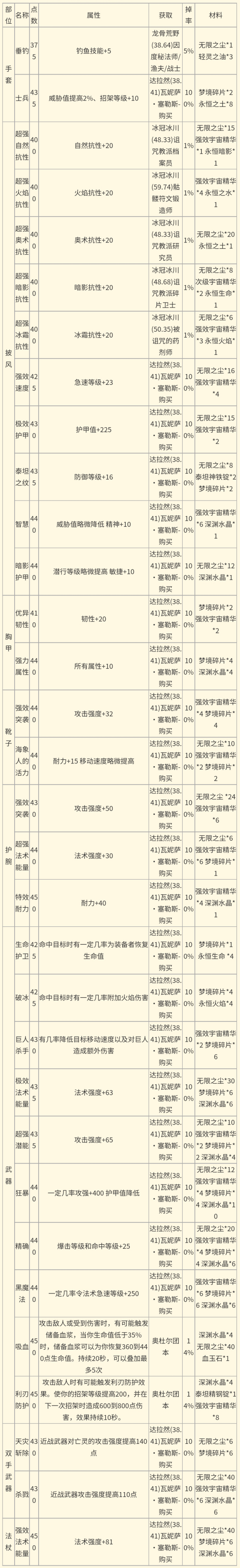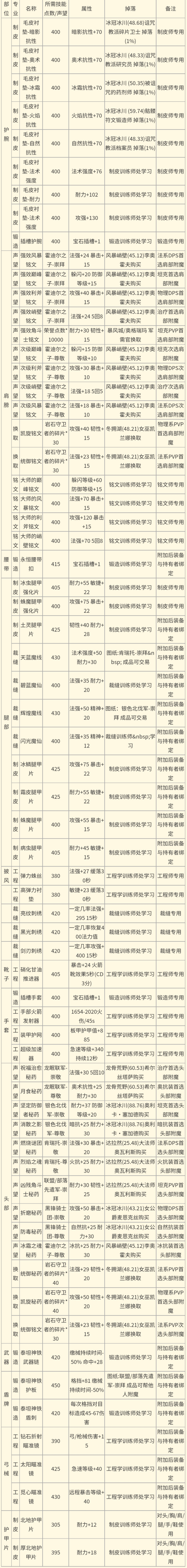 以下数据参考窝窝头数据库及部分他国玩家编辑资料进行的汇总。怀旧服的wlk中可能出现部分变化,欢迎指正。