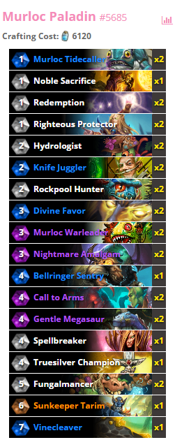 文头这套鱼人骑取自metastats,已连续几天占据5级到传说卡组贝叶斯胜率榜首。