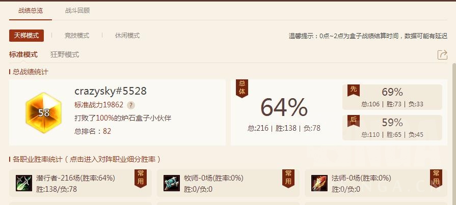 任务贼就是个无脑毒瘤卡组,吃控制,被快攻吊打。事实上在任务被削弱后,即便是对抗控制卡组任务贼也需要操作。所谓的被快攻吊打,在调整构筑也有3到4成胜率。下面我贴对阵各职业胜率来证明这一点。