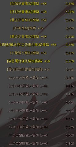 包括:[附加伤害增加]增幅,[附加伤害增加]增幅,[暴击伤害增加]增幅,[伤害增加]增幅,[最终伤害增加]增幅,[三攻增加]增幅,[力智增加]增幅,以及[四属性附加伤害]增幅 ——以上所有词条算法皆为加算