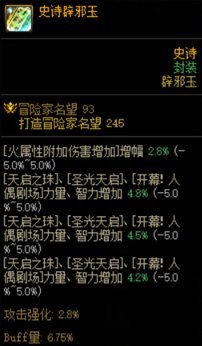 其次,是其他攻击类型词条的辟邪玉。在改版后统称攻击强化玉。因为词条已经整合,所以以下词条所有的伤害加成基本上是一样的!