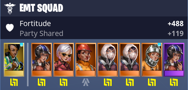 比如说上图的EMT小队对应的是“F”属性,而其他的小队则会提供其他3项属性:
