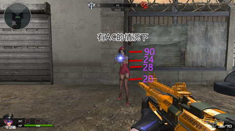 再来看一下黄金Z型步枪的伤害有AC的情况下打头部90、打胸部24、打背部28、打腿部20,从伤害可以看出来只能说一般般但是黄金Z型步枪的稳定性好这也是这把枪的优点,缺点自然就从伤害方面看的出来不过还算是不错的跟M4系列伤害差不多。