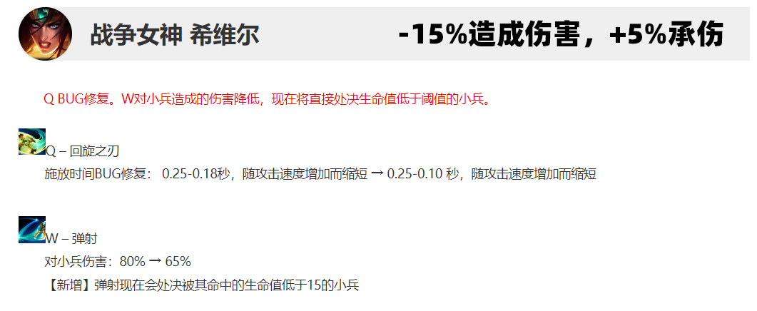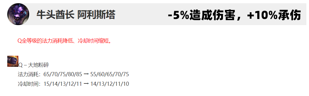 改动解析:Q全等级减少10点蓝耗和1秒冷却,加强幅度一般。