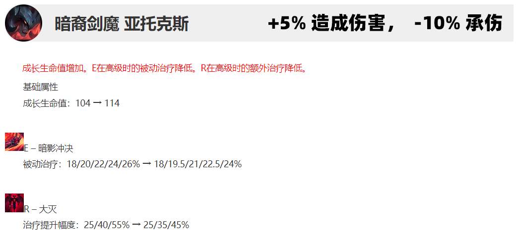 改动解析:耐久度更新和生命偷取、回复削弱后减少治疗量是大趋势,符文里的回复算是这个版本才被找到的漏网之鱼。