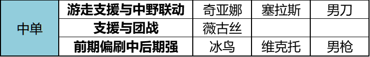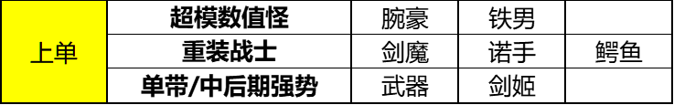 现版本的上路相对于以前来说是比较平衡的,重装战士和单带英雄都有一席之地,两种类型的英雄都能玩起来,不再像以前一样战士一家独大了