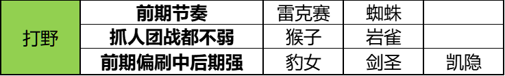 猴子和岩雀在各种阵容下都能玩,前期有抓人能力,中后期打团也不弱