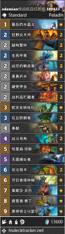 《炉石传说》女巫森林Odemian前百任务骑卡组