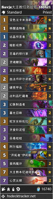 Savjz大主教任务脏牧,纯粹的娱乐卡组,不太在意胜率,但是玩起来乐趣十足
