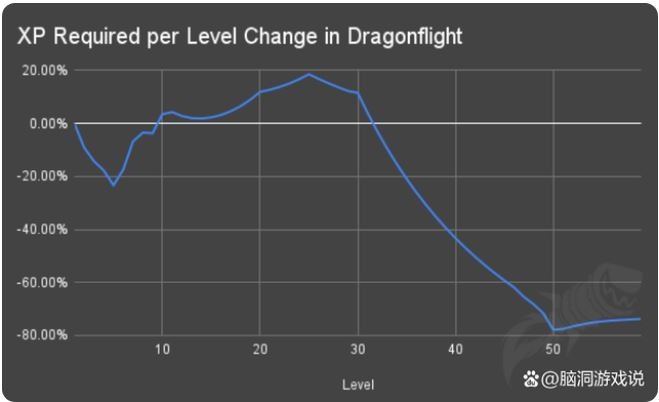 从32级开始,巨龙版本对比旧版的升级效率,就会有明显的速度上的提升,因为10.0版本大幅度地减少了每级的升级经验。在32到50级这个阶段,每级以叠加的方式减少5%左右的经验,50级所需的升级经验直接少了78%。也就是当角色达到32级,升级速度就会直接起飞,这样就能做到在克罗米时间线里面用一个资料片就轻松升到60级,然后进入巨龙版本的新等级阶段。