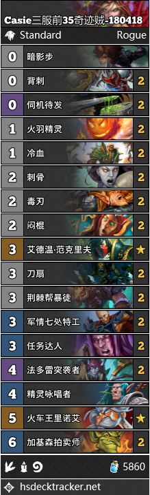 《炉石传说》女巫森林Casie三服前35奇迹贼卡组搭配