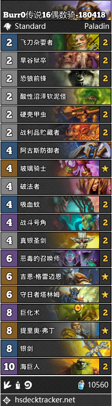 《炉石传说》女巫森林Burr0传说16偶数骑卡组搭配