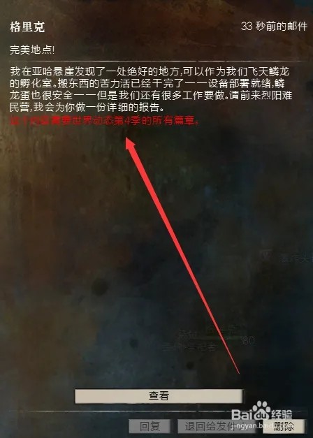 当你用昨天做完第一阶段的号上线,你就会收到格里克的邮件,而且自动解锁拯救飞天鳞龙收藏成就。
