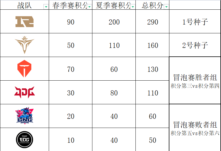 V5在春季赛第三名的50积分也有一定优势,V5只要打进夏季赛决赛就保底有160积分,此时只要TES夺冠V5就能拿到积分第二的这个二号种子挺进世界赛。