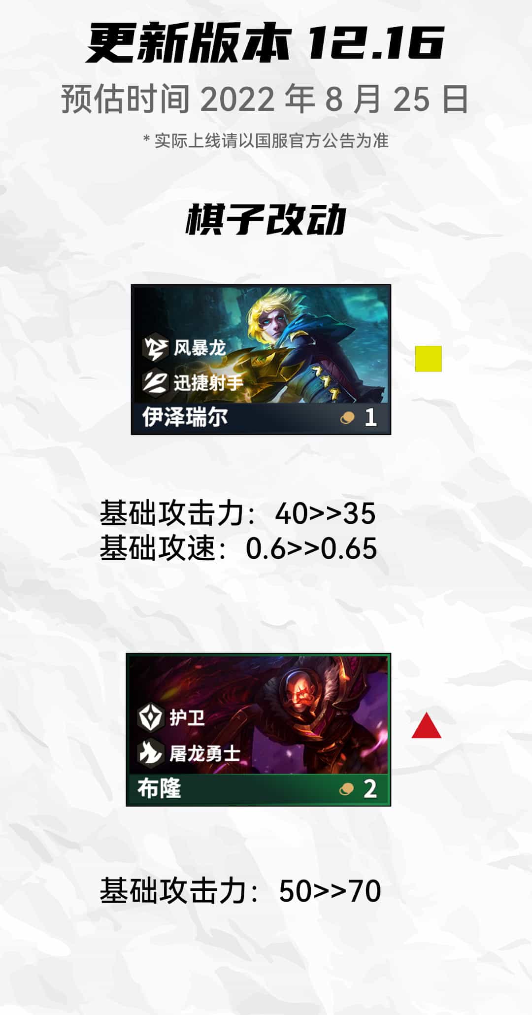 云顶之弈12.16马上就要来了,小伙伴们还不知道什么时候更新吧,具体更新什么呢,都有些什么改动呢,下面给大家介绍一下云顶之弈12.16更新改动。