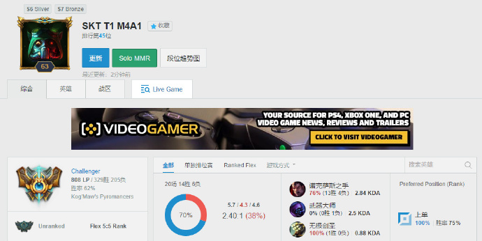 根据小马目前在韩服的战绩我们可以看到他的诺手在最近的17场比赛中获胜了其中的13场,并且快速的上分,现在以王者800点高居韩服第四十五名。