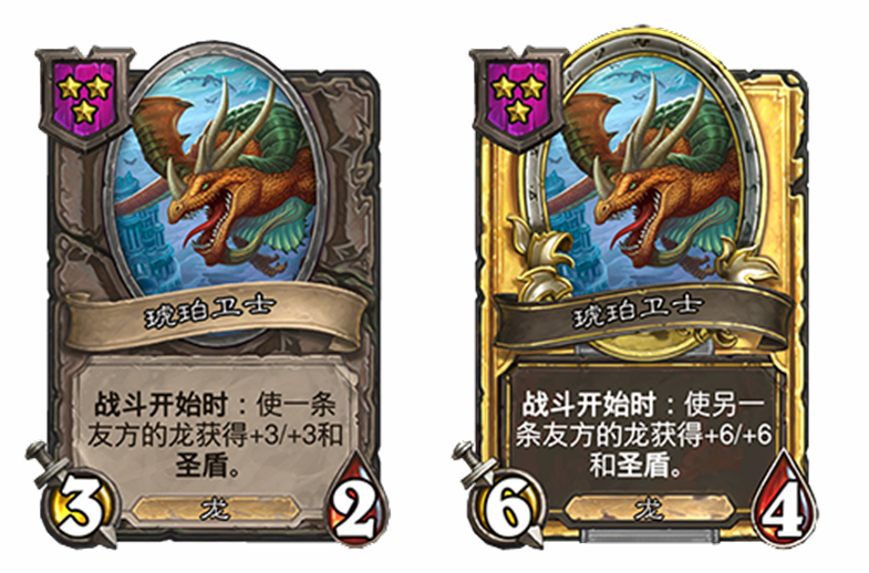 3星3/2龙,战斗开始时:使另一条友方的龙获得+3/+3和圣盾。