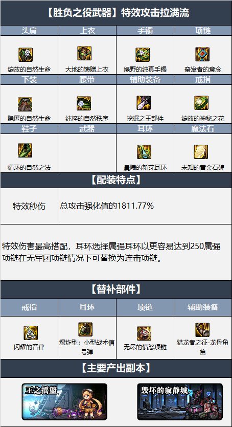 特效流派核心装备为防具五件套,其他部件以特效伤害为主体的装备