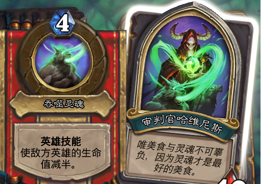 第六个是审判官哈维尼斯,技能是吞噬灵魂,效果是使敌方英雄生命值减半。不过技能的消耗是4费,所以不能常用,也算个比较弱的boss。