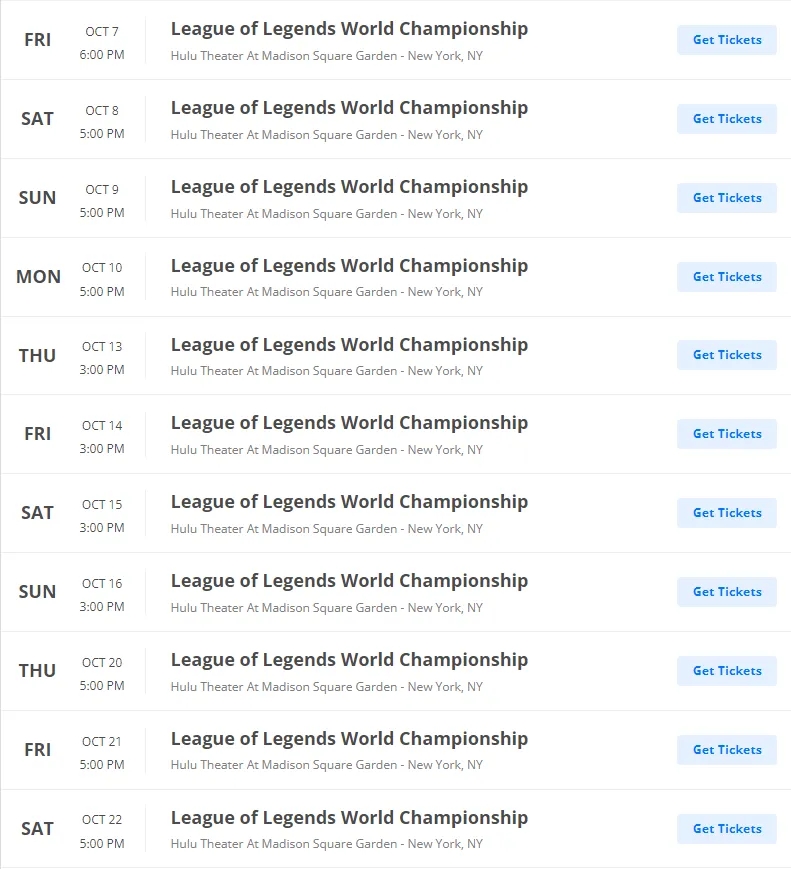 而Ticketmaster网站上也更新了S12小组赛、1/4决赛及半决赛阶段的比赛时间,和此前泄露出的信息基本保持一致,具体如下(以下皆为北京时间)