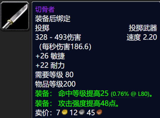 TBC断骨者的升级版,有命中属性的投掷武器是盗贼的最爱,战士用着也不错。