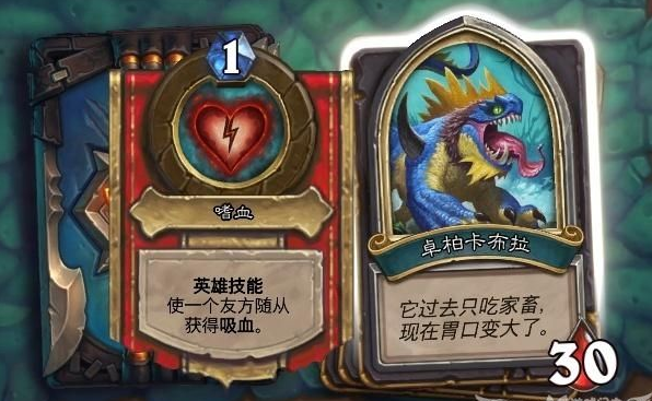 *吸血鬼之牙:3费法术:消灭一个随从。为你的英雄恢复生命值,数值相当于此随从的生命值。