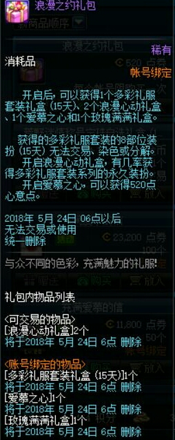 浪漫之约礼包售价520点券(不能用代币券购买)