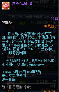 开启后,必定获得20个粉红花瓣,同时可以随机获得以下道具的一种。