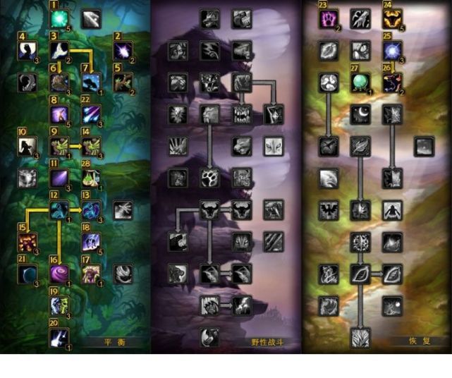 平衡德升级天赋示意图,图标左上方的数字为点天赋的顺序
