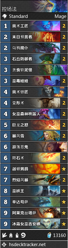 控制法就不怎么样了,尽管非常针对偶数骑,但在面对一些流行卡组甚至奥秘法的时候都很疲软。