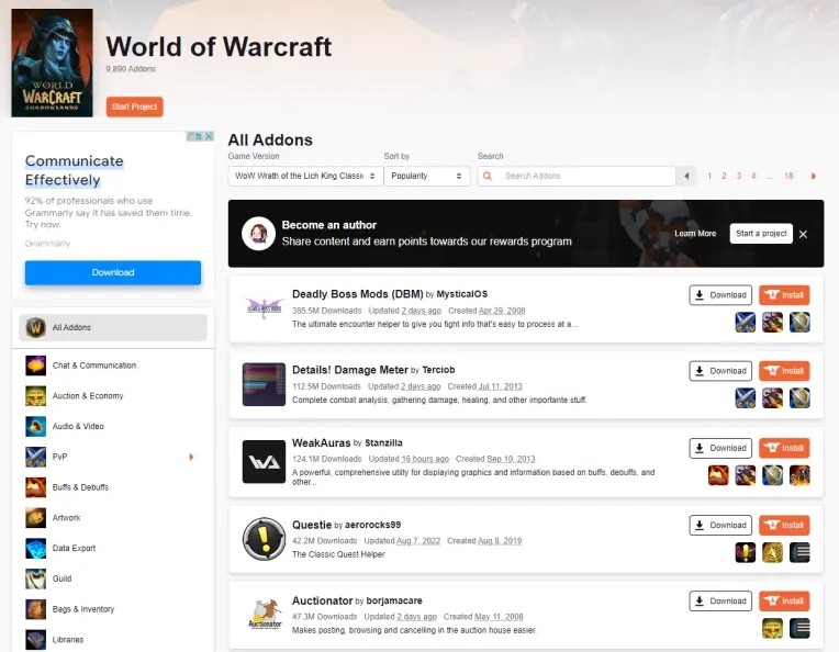 上面这个是WLK插件点击率从高到低顺序的链接。大家可以查找一些需要的插件,例如DBM、Details、WA、Questie(任务插件)、Threatclassic2(仇恨插件)等等,都可以下载使用。