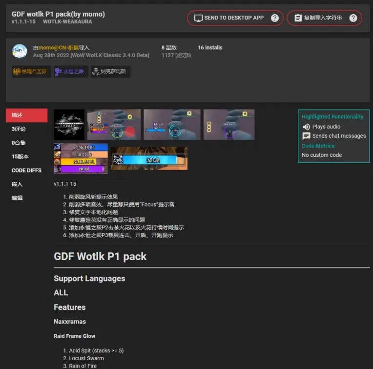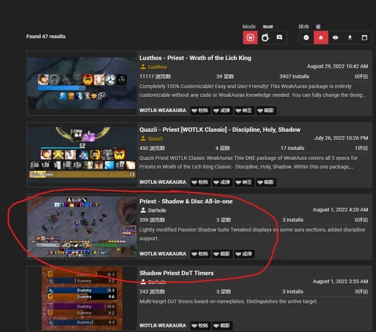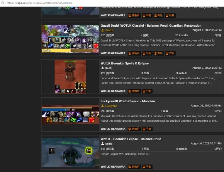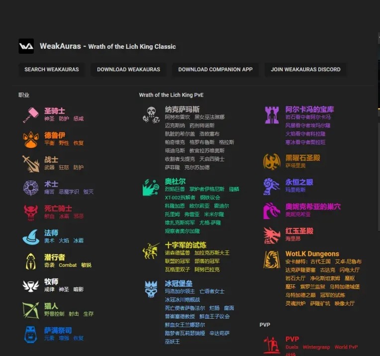 其次就是WA,可能在一个月前,WA官网就已经开始更新WLK的WA了,很多玩家都设计都在上传,具体地址为:https://wago.io/wotlk-weakauras