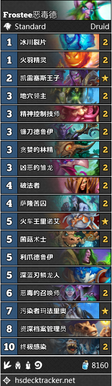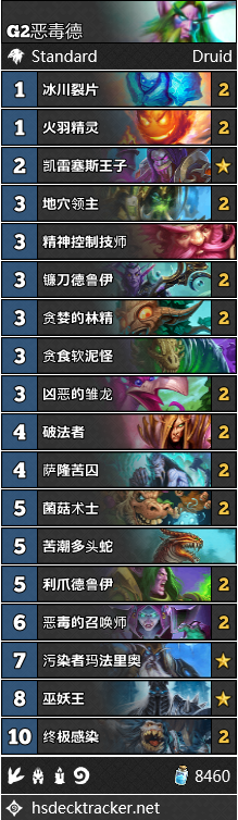 恶毒德是德鲁伊职业最高胜率的卡组,但本周变化不大。