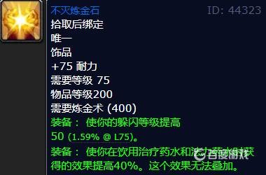 1、不灭炼金石,坦克职业使用,加耐力和躲闪。