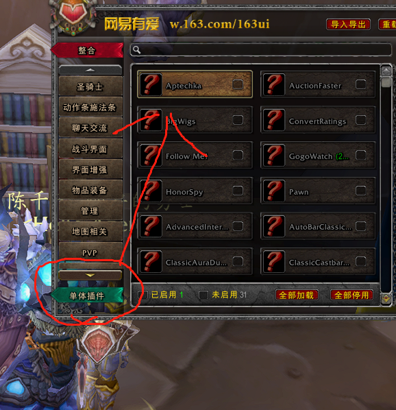 解决的办法是打开有爱插件,选择左边最下面的单体插件,然后把Aptechka的勾去掉即可。