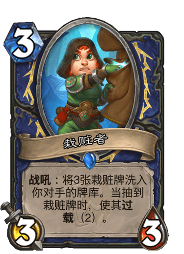 战吼:将三张栽赃牌洗入你对手的牌库。当抽到栽赃牌时,使其过载(2)。