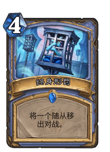 炉石传说的全新版本纳斯利亚堡的悬案正式的推出了,本次的版本命名为:混乱噬渊,推出了很多全新的卡牌,终身刑罚就是其中一张,那么下面就为大家带来了这张牌的介绍.
