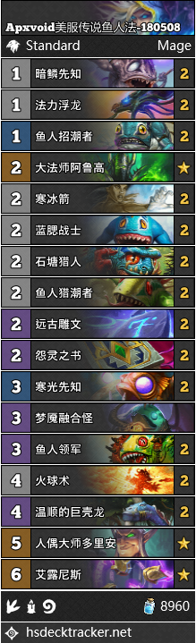 Apxvoid大神用鱼人法打了个美服传说,寒冰箭、雕文、火球都可以补伤害,因此可以带,没必要强行随从法