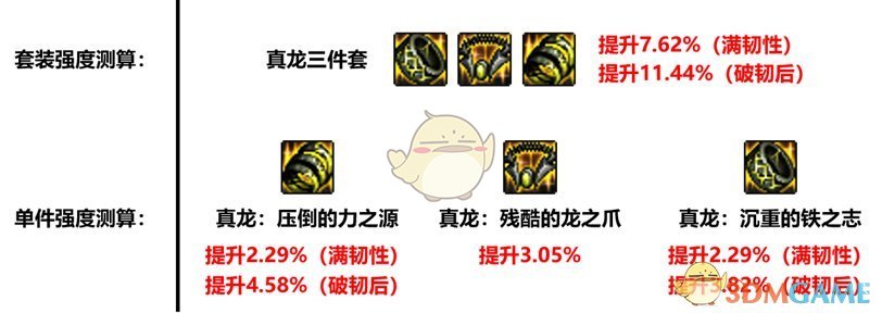 真龙系列史诗主打对角色削韧能力的增幅,部件的攻强提升不算太高。