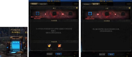 与奥兹玛融合史诗模式相同,军团融合史诗与对应首饰部位的105级史诗进行融合,并将自身属性加在105级史诗上面。融合NPC为临时营地的[机动装备仓],融合材料需要金绿柱石50个、灵魂之源10个,分离不消耗材料。