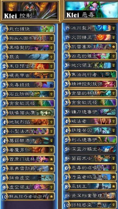 在炉石传说美服HCT第一赛季预选赛期间,控制、恶毒受到很多比赛选手的热衷,Klei大神正是当中之一。那么Klei比赛期间带来的卡组如何搭配呢?小编下面就将带来炉石传说美服HCT第一赛季预选赛Klei卡组解析,一起来看看吧。
