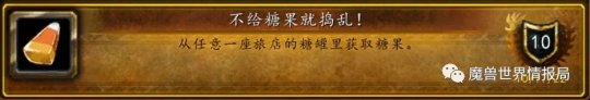 整个万圣节最费时间的就是“艾泽拉斯的糖果”这个最重量级的成就,其中包括卡利姆多的糖果、东部王国的糖果和外域的糖果,需要我们跑遍几乎整个地图在各个地图旅店里的糖果罐处获取糖果。