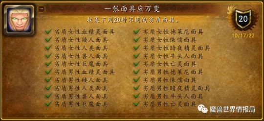 万圣节最后还有一个额外的收集面具的任务,当你收集到一张或者20张的时候都能跳成就。这个成就不计入“神圣之名”系列,但是依旧有成就点数。