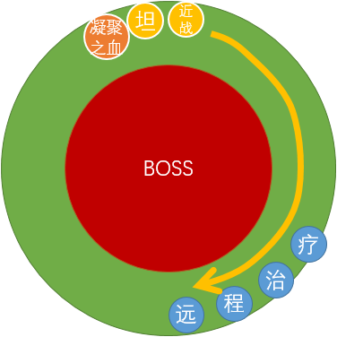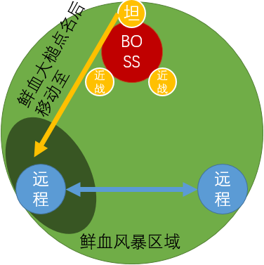 凝结之血会不断在路径上留下鲜血风暴,因此我们需要让坦克拉住所有的凝结之血并作绕圈移动