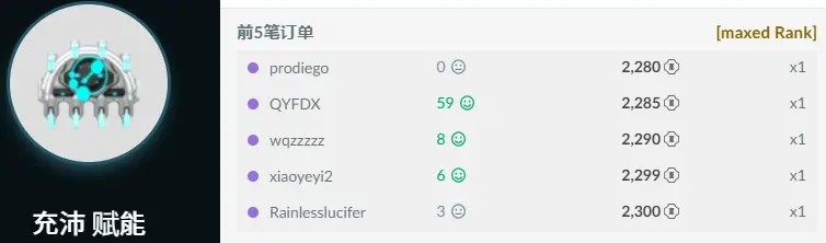 今天大部分物价集体上涨(紫卡未开除外)。【优雅 赋能】价格不稳,不急出的可以考虑个900-1000P。万一再次过千呢~【复仇者 赋能】或成新贵!均价上涨50P+。另外【狂怒 赋能】再次发起对500P的重冲锋挑战,个人觉得有机会。【剑风 Prime】价格也迎来一个30P的价格上涨,有零碎的赶紧出。【充沛 赋能】价格依旧高位不动,2200+可以考虑出。最后就是【消磁 赋能】价格魔幻上涨10-20,具体原因未知。