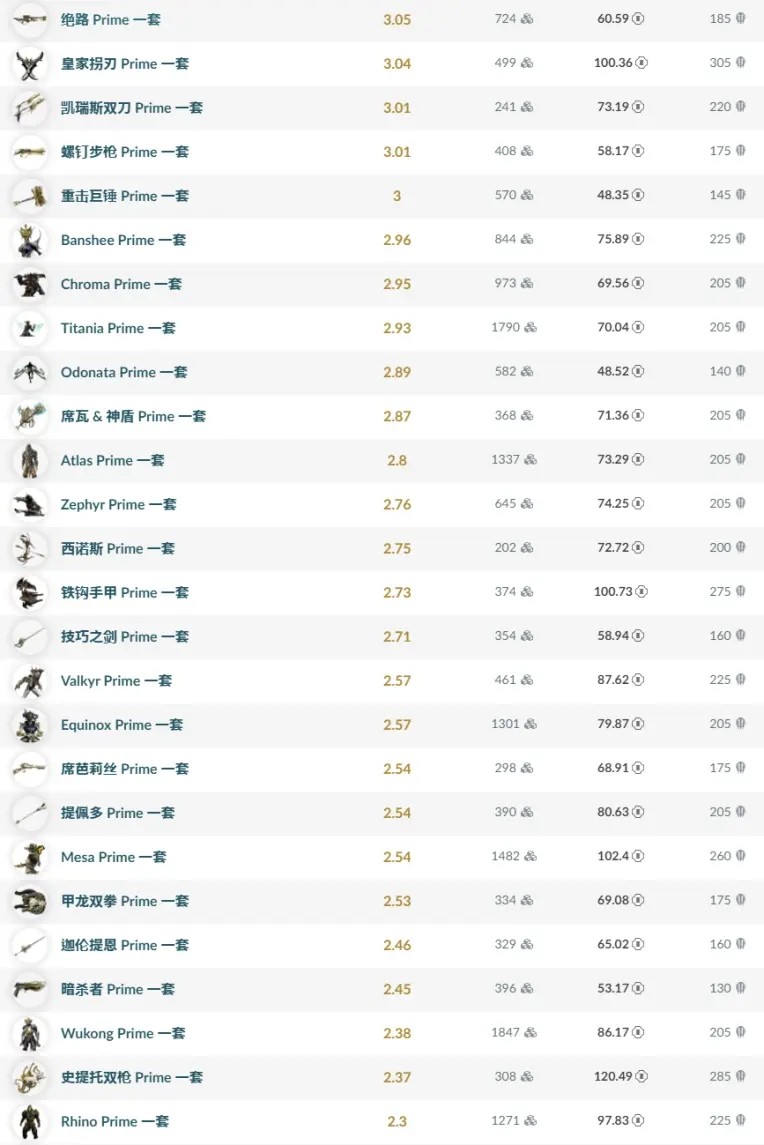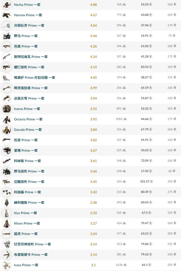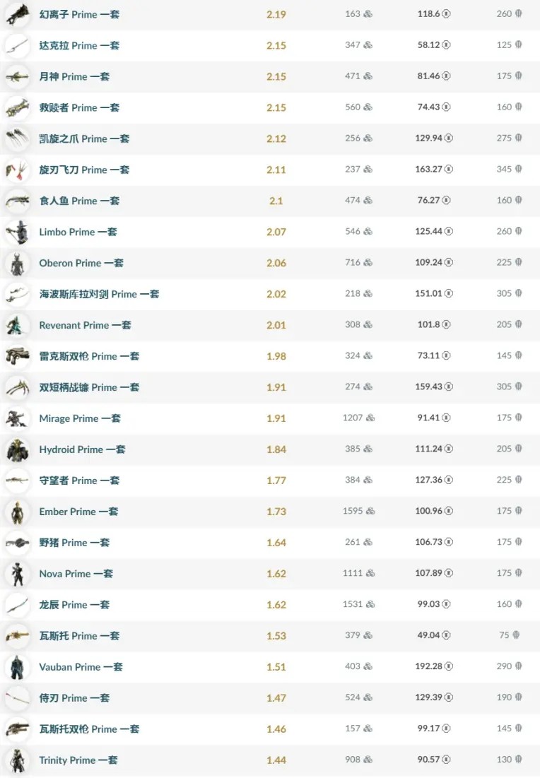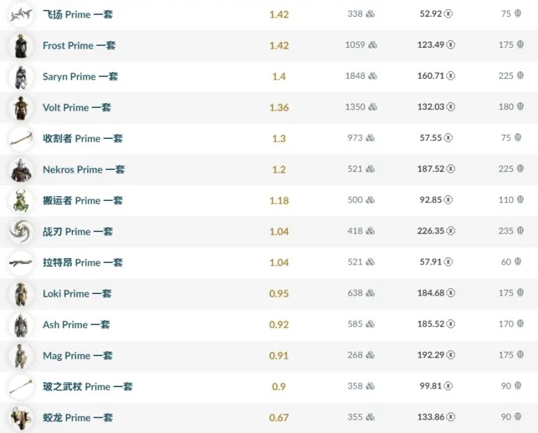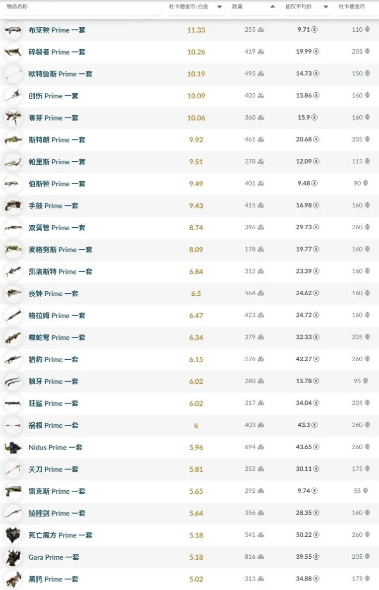 相信玩星际战甲的小伙伴都知道,在星际战甲中白金是比较通用的资源,有小伙伴好奇有什么比较好交易白金的价格表,那么下面就给大家带来星际战甲赚白金价格表。