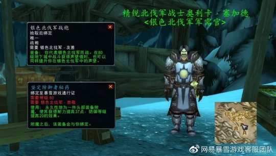 银色北伐军的军需官位于冰冠冰川的银色前线基地,声望友善时可以购买【银色北伐军战袍】,声望崇敬后可以购买头部附魔【坚定防御者秘药】,还可以邮寄给战网下其他角色。具体声望介绍可以点击此处前往官网查看