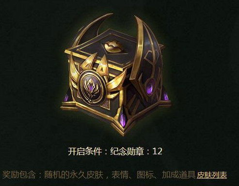 2018季中冠军赛纪念勋章积累12个,可以获得一个LPL出征礼盒,LPL出征礼盒能开出随机的永久皮肤,表情、图标、加成道具。