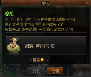 dnf古德曼在家园之中,农场管理员就是古德曼,最主要的任务是出售各类农作物的种子,对古德曼可赠送的礼物分别为棉花、南瓜、蓝莓,这三种礼物都可以通过种植获得。